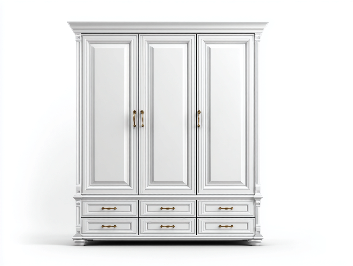 This 3 door wardrobe provides an elegant and structured storage solution for bedrooms. Its refined panelled design and balanced proportions create a timeless appearance that complements classic interior styles.