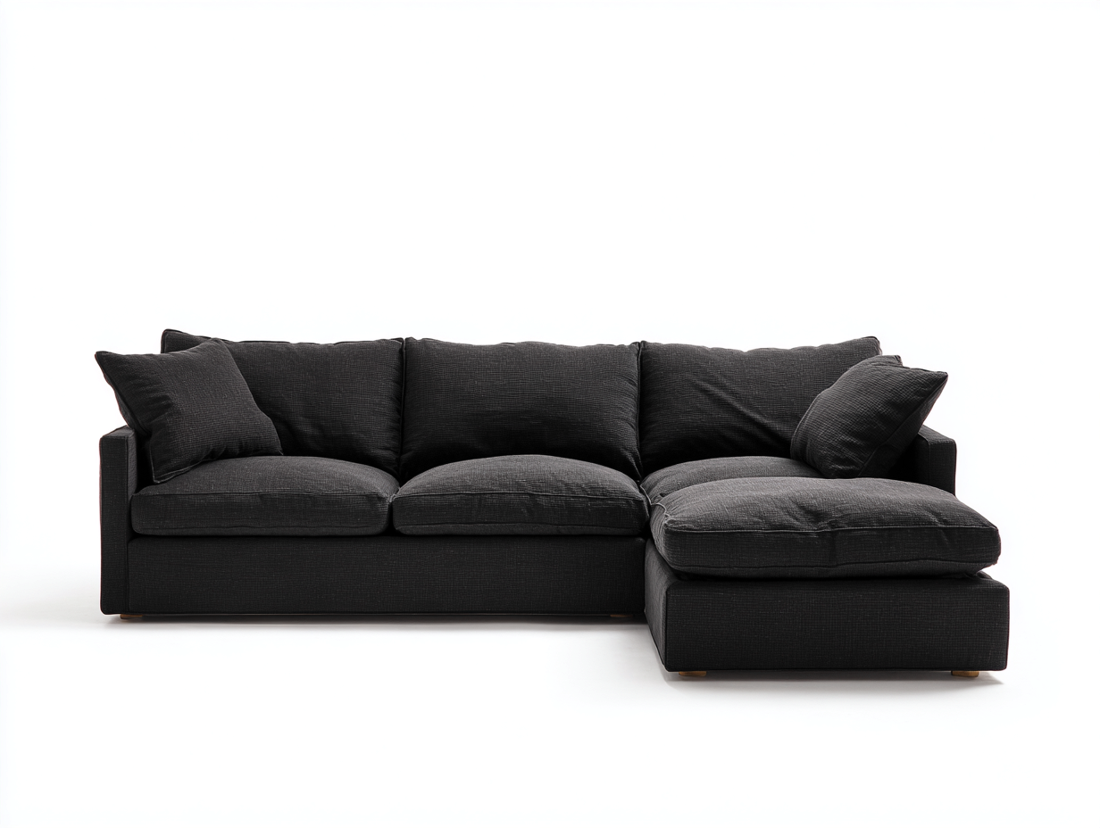 This corner sofa delivers a generous seating area with a clean and understated appearance, making it suitable for contemporary living rooms and family spaces. The low-profile silhouette supports a relaxed and comfortable environment for everyday use.