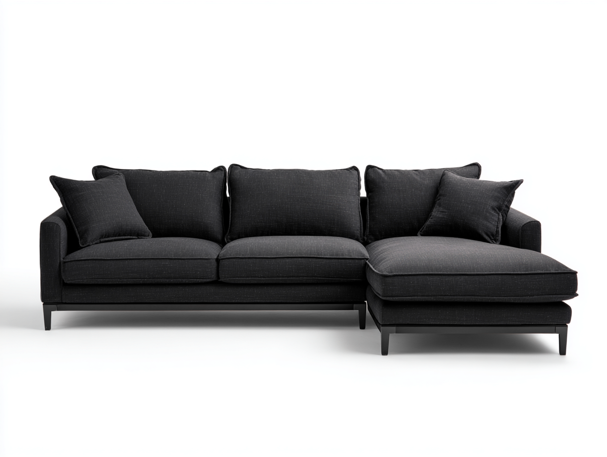 This corner sofa offers a clean and contemporary seating solution for living rooms. Its streamlined silhouette and deep seating design create a relaxed atmosphere suitable for modern home interiors.